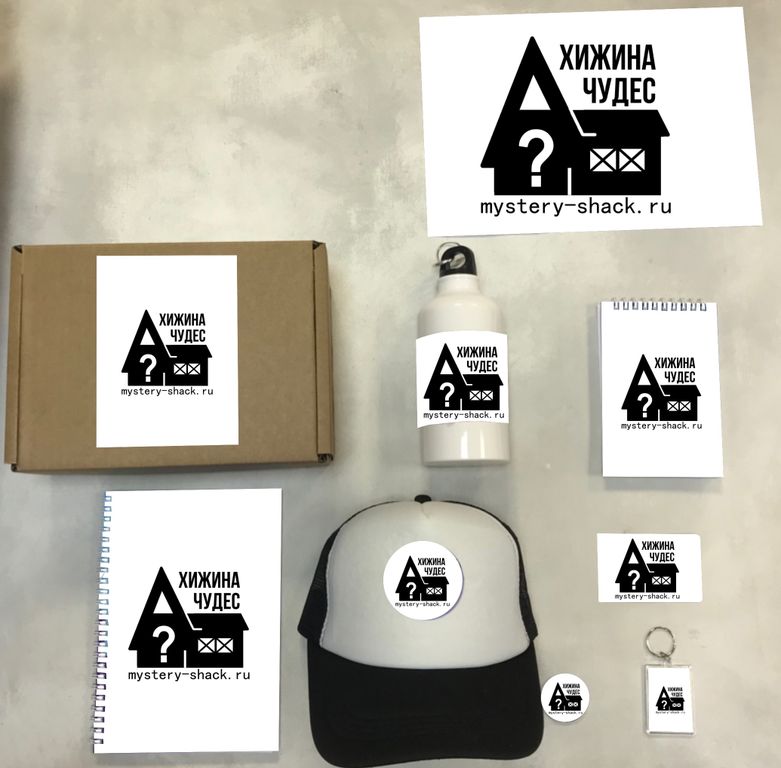 В коробку входят 8 предметов: спортивная бутылка, закатной значок, акриловый магнит, блокнот формата А6, тетрадь формата А5, брелок акриловый, кепка и плакат формата А4.